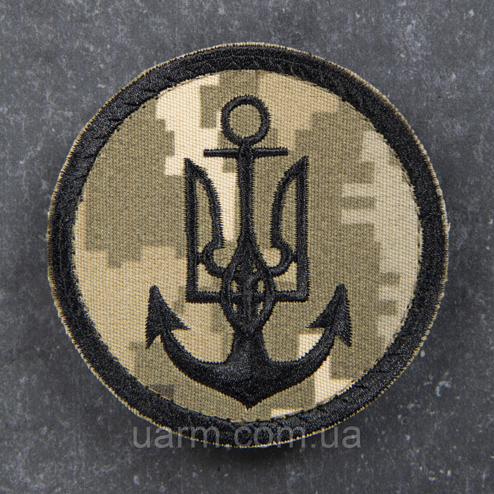 Шеврон Тризуб ВМС ЗСУ чорний піксель